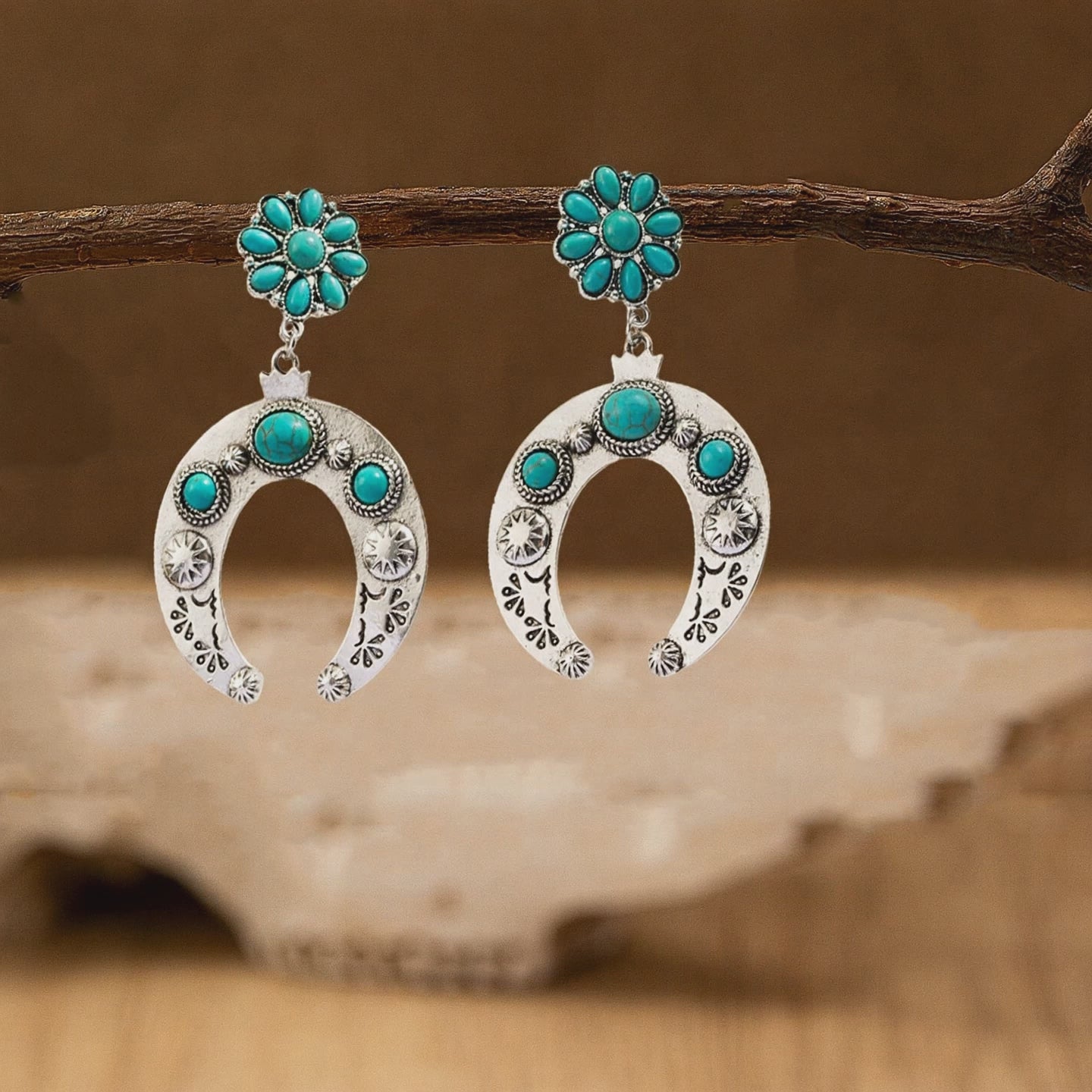 Bohemian Ethnic Style Earrings Turquoise Diamond Hollow Earrings